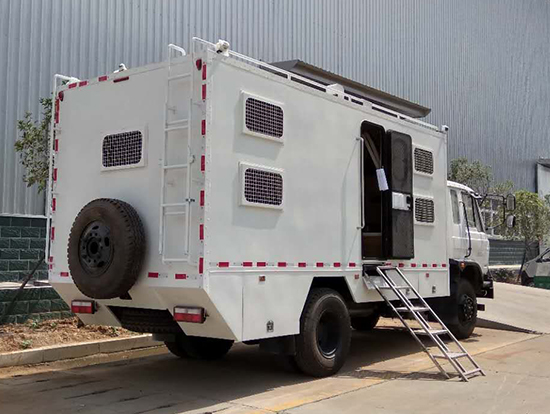 三、東風(fēng)四驅(qū)越野宿營(yíng)車, 4驅(qū)越野宿營(yíng)車用途:適用公安、特警、公安、邊防、衛(wèi)生、交通、礦山、地質(zhì)、軍隊(duì)等部門(mén)]長(zhǎng)期野外作業(yè)、勘察、救援、搶險(xiǎn)、救災(zāi)等宿營(yíng)用,箱體空間利用大化。內(nèi)部配置:配備前儲(chǔ)物柜、后儲(chǔ)物柜、液晶電視機(jī)應(yīng)急燈、頂燈、頂置空調(diào)、床墊、被褥等。選裝配備8組豪華折疊臥鋪、未鋪上下梯、安全保險(xiǎn)帶、電源插口等,細(xì)節(jié)精致。外置燃油加熱器、頂護(hù)欄、前爬梯、隱藏抽拉梯、專用房車門(mén)、專用玻璃滑窗、警示燈等。