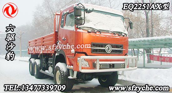 東風(fēng)牌EQ2251AX型沙漠越野車配置:采用東風(fēng)新款D310平頂單臥駕駛室,發(fā)動(dòng)機(jī):康明斯375馬力國四發(fā)動(dòng)機(jī) 直列增壓中冷六缸水冷柴油機(jī) ISLe375 40;北方奔馳同步器型9擋箱 9T-160 Φ430mm,膜片彈簧拉式離合器,7T前橋,10T 重慶大江雙級(jí)減速雙后橋 14.00-20輪胎 (選裝20-20 沙漠胎)軸距3800+1400 鋼板彈簧片數(shù)9/10,油箱350L,貨箱尺寸:5720×2294×800mm,整車外形尺寸:8470×2500,2700×3520,動(dòng)力轉(zhuǎn)向。如需了解更多東風(fēng)六驅(qū)沙漠車圖片,東風(fēng)六驅(qū)沙漠車價(jià)格,東風(fēng)六驅(qū)沙漠車參數(shù),請立即撥打銷售熱線:13477339709 李經(jīng)理 0722-7053060 業(yè)務(wù)QQ:530233927,東風(fēng)越野卡車網(wǎng)址:www.kangtai12.com
