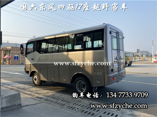 EQ6600ZT6D型17座四驅(qū)客車配置如下:采用東風(fēng)原廠4×4越野底盤型號EQ6580KZ6T,發(fā)動機為:濰柴170馬力國六發(fā)動機WP4.1NQ170E61,排量4.088L帶增壓、法士特6擋變速箱、軸距3300mm,整車外形尺寸長寬高:(5990×2280×2750,3030)mm 驅(qū)動形式:4×4 東風(fēng)分時四驅(qū)、離合助力,方向助力,斷氣剎,鼓式自動、車橋為東風(fēng)德納,輪胎為8R19.5真空輪胎后雙胎、后備行李箱,工具箱2個,粘接式推拉玻璃、鋁花紋地板,中檔座椅,整車座椅安全帶,手動式外擺門,正副司機門、整車窗簾,滅火器1個,備胎一個。選裝配置:東風(fēng)派恩大功率頂置空調(diào),獨立柴油鍋爐暖風(fēng),頂置警燈帶喊話器,頂置行李架帶爬梯,后對開門等。