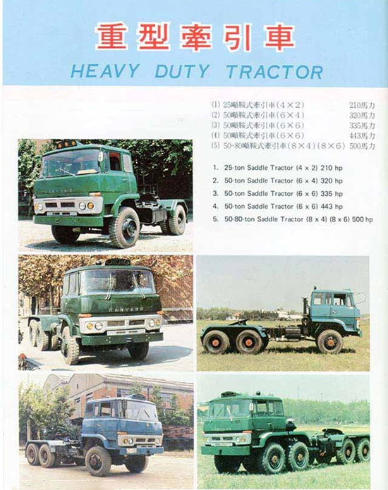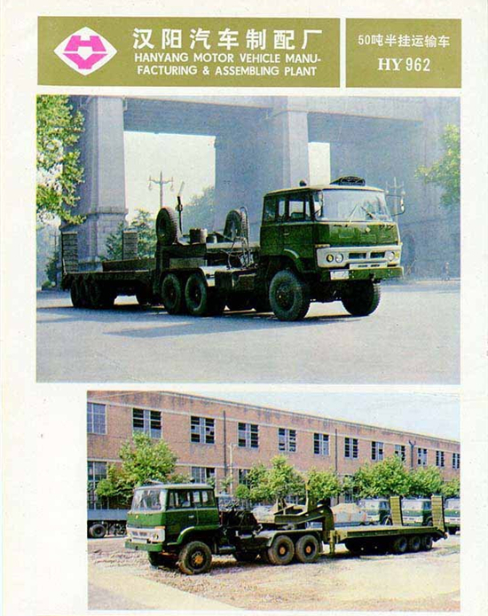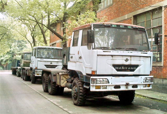 漢陽(yáng)特種汽車制造廠生產(chǎn)軍用車的歷史可以追溯至上世紀(jì)60年代。當(dāng)時(shí)該廠完成了魚雷運(yùn)輸車的試制任務(wù),從而步入軍工生產(chǎn)的行列,隨后漢陽(yáng)又開(kāi)發(fā)了導(dǎo)彈運(yùn)輸車、舟橋車等軍用車。進(jìn)入到上世紀(jì)70年代,隨著我國(guó)汽車工業(yè)缺重少輕的矛盾日漸突出,漢陽(yáng)在1972年研制成功了HY470型25噸4x2重型半掛牽引車,1979年,又成功開(kāi)發(fā)出50噸的6x4牽引車。