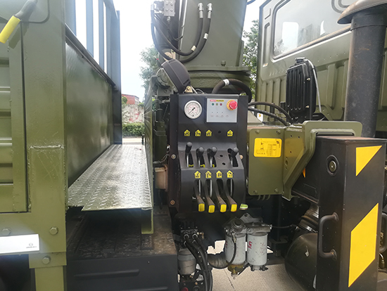 3.    采用三一5噸直臂式隨車吊,SPS12500型三一原廠吊機(jī),吊機(jī)自重2.27噸,最大起重質(zhì)量5噸,四節(jié)臂,舉升高度13.4米,工作半徑11.9米,一體式回轉(zhuǎn),車廂尺寸4.25米,遠(yuǎn)程油門控制,下操作,選裝液壓后支腿,上操作高空座椅。