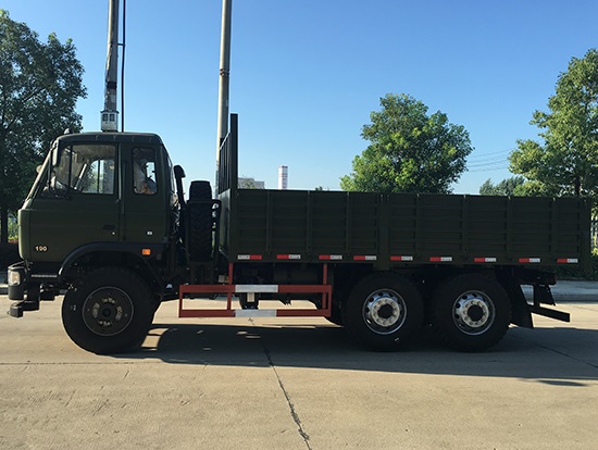東風(fēng)新款國(guó)五六驅(qū)越野貨車配置簡(jiǎn)介:采用東風(fēng)EQ2220GD5DJ型越野汽車底盤,東風(fēng)D530老款駕駛室/D913豪華駕駛室可供選裝,6×6驅(qū)動(dòng),康明斯ISB190 50國(guó)五發(fā)動(dòng)機(jī),六檔變速箱,標(biāo)配315/80R22.5 20PR可換為12.5R20真空越野輪胎,軸距3500+1250mm,加厚雙層大梁,電動(dòng)玻璃,方向助力,斷氣剎,ABS,備胎一套,大箱長(zhǎng)度5米,墻板高度600mm。