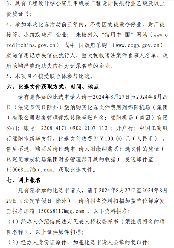 綿陽機(jī)場 T1、T2 航站樓連接通道改造項(xiàng)目設(shè)計(jì)單位(第二次)比選公告