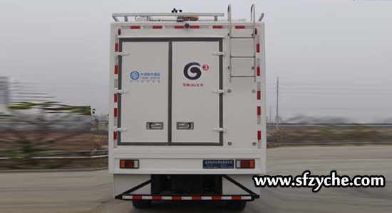 1.隨底盤選裝駕駛室頂部空調(diào);2.車后部加裝后梯,后梯的下半部分可拆卸,車輛行駛時可放置廂內(nèi); 3.主要專用裝置:移動通信基站天線、升降塔;4.專用功能:確保在熱點(diǎn)區(qū)域臨時增加同時提供數(shù)個基站的話務(wù)量支持;5.側(cè)面防護(hù)裝置的材質(zhì)為鋁合金,連接方式為螺栓連接;后下部防護(hù)裝置的材質(zhì)為Q235,連接方式為螺栓連接,斷面尺寸為100mm×50mm,離地高度為530mm