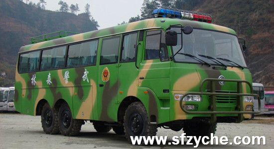 東風(fēng)六驅(qū)越野客車(chē)采用康明斯160馬力發(fā)動(dòng)機(jī),東風(fēng)5擋變速箱,整車(chē)長(zhǎng)8.4米,寬2.35米,高2930米,采用東風(fēng)EQ6840東風(fēng)特汽越野車(chē)專(zhuān)用底盤(pán),最多座位數(shù)30座,采用11R18大花紋越野輪胎,整車(chē)迷彩色,選裝空調(diào)暖風(fēng)系統(tǒng)。