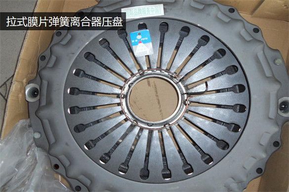 而膜片彈簧離合器,還要分為推式和拉式兩種操作方式。推式能傳遞的扭矩有限,一般在中輕卡上用得比較多,而重卡因?yàn)榘l(fā)動(dòng)機(jī)的輸出扭矩較大,拉式離合器的結(jié)構(gòu)更適合傳遞更大的扭矩,所以在重卡中,拉式離合器就順理成章的成為了標(biāo)準(zhǔn)配置。